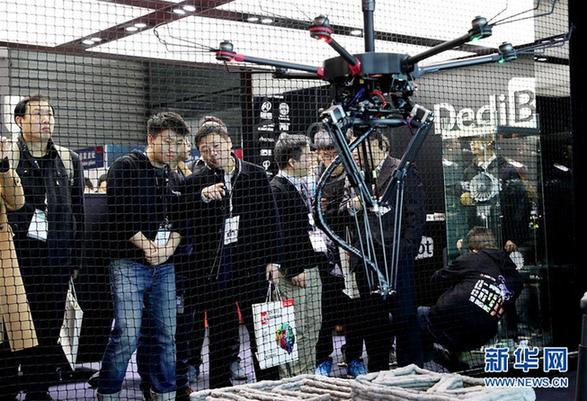 ↑3月1日,一款搭載無人機(jī)的開放式3D打印設(shè)備在展會(huì)現(xiàn)場進(jìn)行作業(yè)演示。新華社記者 方喆攝